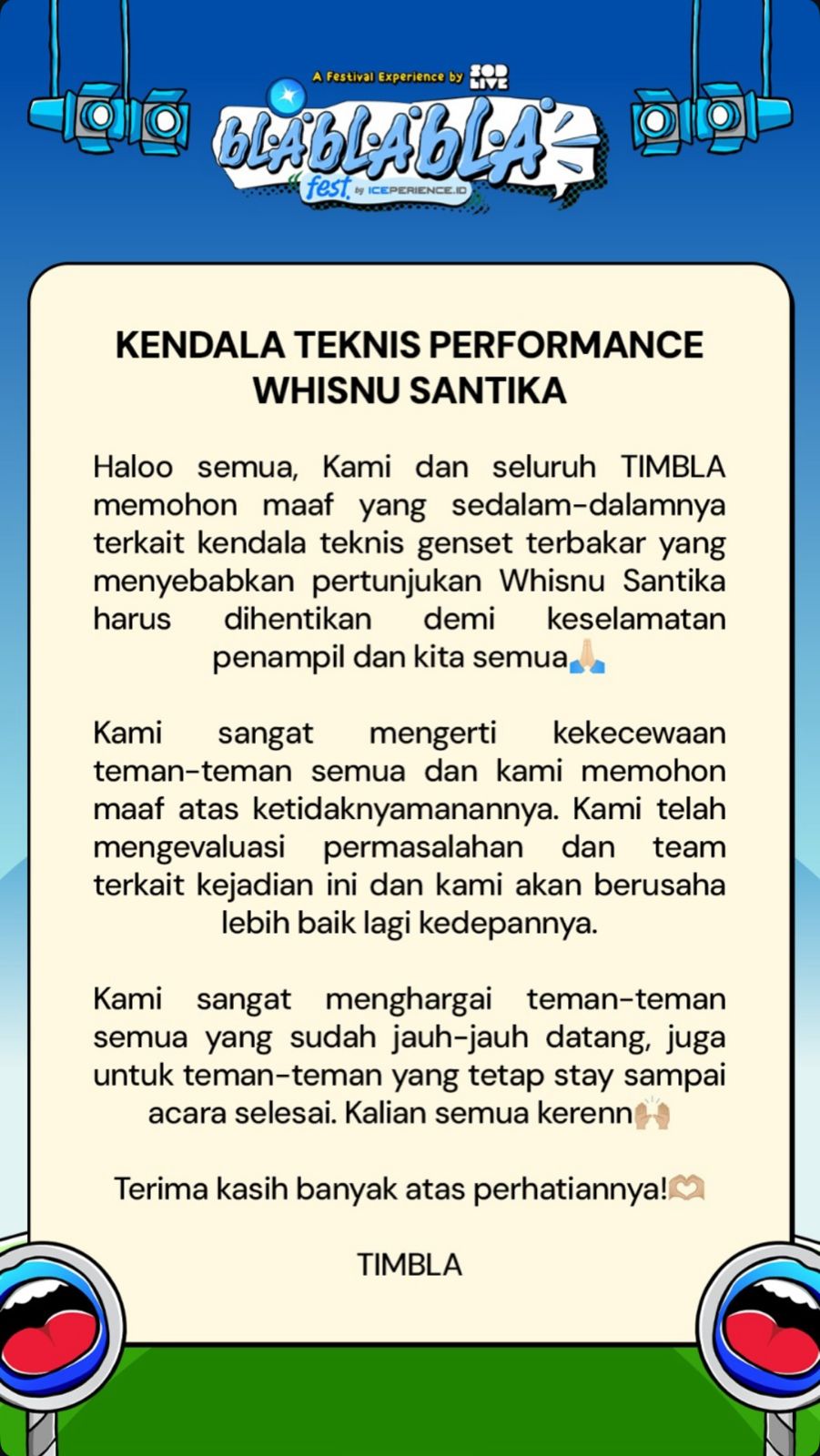 Klarifikasi kendala teknis performance Whisnu Santika--dokumen istimewa
