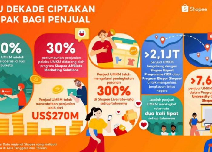 Sejak diluncurkan pada tahun 2015, Shopee berkomitmen untuk membantu para penjual agar dapat berkontribusi dan sukses dalam ekonomi digital. Selama satu dekade terakhir, Usaha Mikro, Kecil dan Menengah (UMKM), telah mengembangkan bisnisnya hingga berhasil mencapai lebih dari US$270 miliar dalam penjualan di Shopee secara global. Hal ini semakin menegaskan peran transformatif e-commerce dalam mendorong pertumbuhan bisnis dan menciptakan peluang ekonomi.