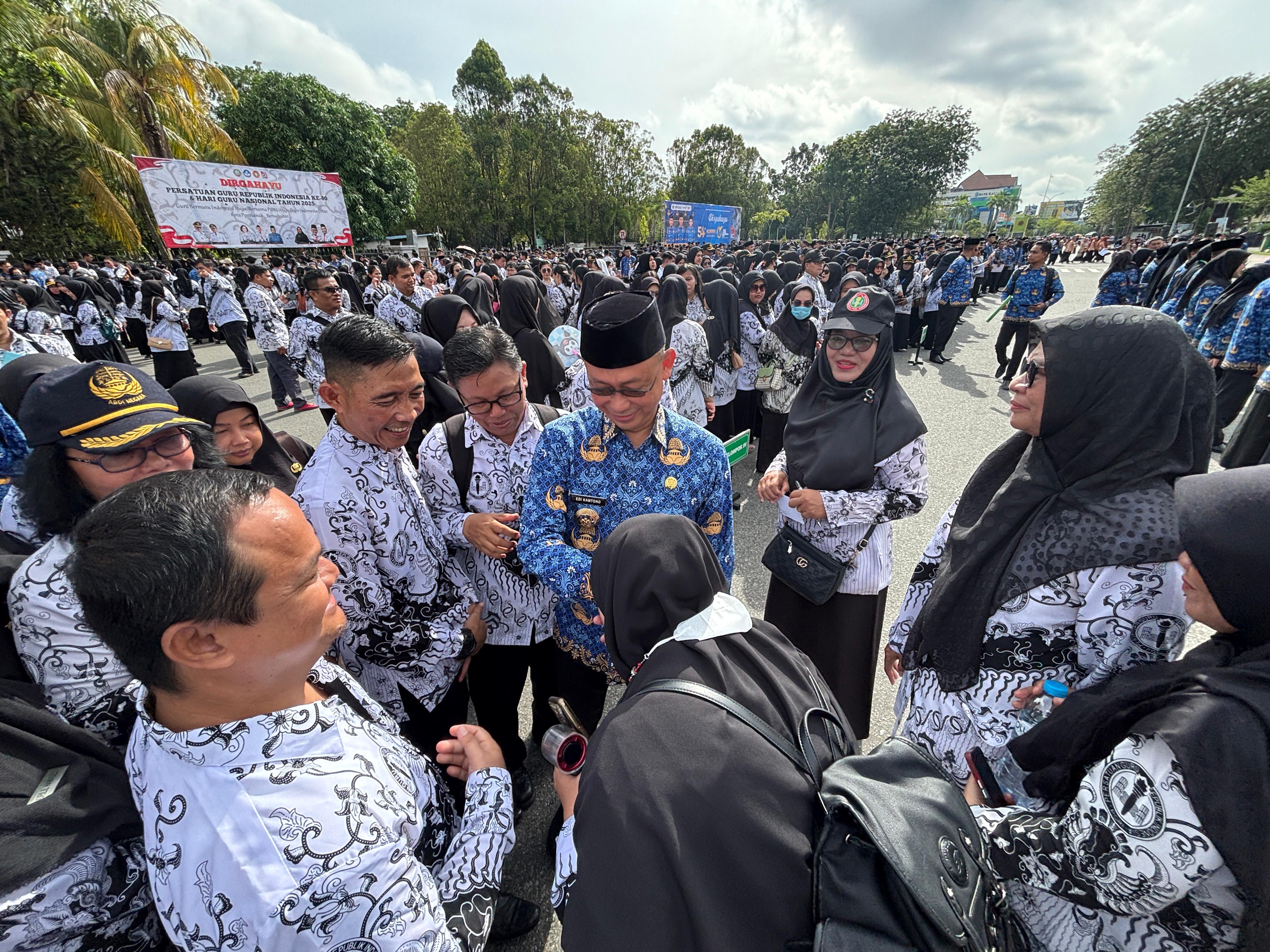 PONTIANAKINFO.COM, PONTIANAK - Guru sebagai tauladan murid-muridnya harus senantiasa menjaga citra positif, baik saat menjalankan tugas maupun dalam kehidupan sehari-hari di masyarakat. Pesan itu disampaikan Wali Kota Pontianak Edi Rusdi Kamtono usai upacara peringatan HUT KORPRI ke-54 yang dirangkaikan dengan peringatan Hari Guru Nasional di depan Kantor Wali Kota Jalan Rahadi Usman pada Jumat, 28 November 2025.