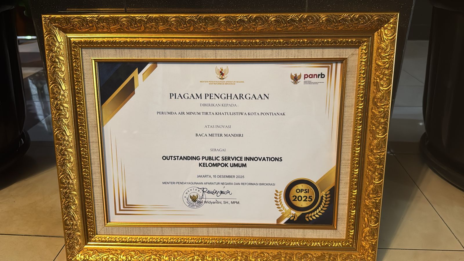 Inovasi Baca Meter Mandiri, PDAM Tirta Khatulistiwa Pontianak Raih Penghargaan OPSI 2025