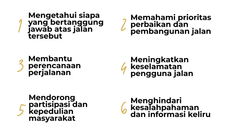 Mengetahui perbedaan status jalan bukan sekadar pengetahuan teknis. Informasi ini membantu masyarakat memahami prioritas pembangunan dan perbaikan jalan, meningkatkan keselamatan pengguna jalan, membantu perencanaan perjalanan, serta mendorong partisipasi dan kepedulian publik terhadap fasilitas umum. Selain itu, pemahaman ini juga mencegah kesalahpahaman terkait kewenangan pemerintah dalam penanganan infrastruktur jalan.